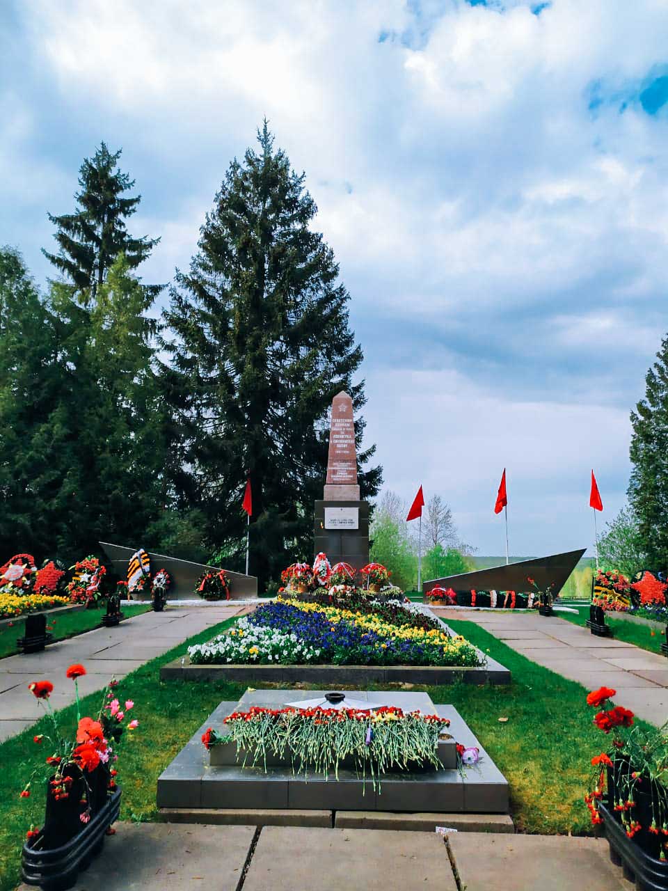 Anschließend fuhren wir auf die Sinjawino-Höhen. Sie wurden gleich zu Beginn der Blockade von den deutschen Truppen besetzt, da sie erhöht liegen und deshalb ein guter Aussichtspunkt sind. Von hier aus beschoss die Wehrmacht die sogenannte “Straße des Sieges”: die Eisenbahnstrecke, die Leningrad mit “der großen Erde” verband. Erst im September 1943 konnte die Rote Armee die Sinjawino-Höhen zurückerobern.