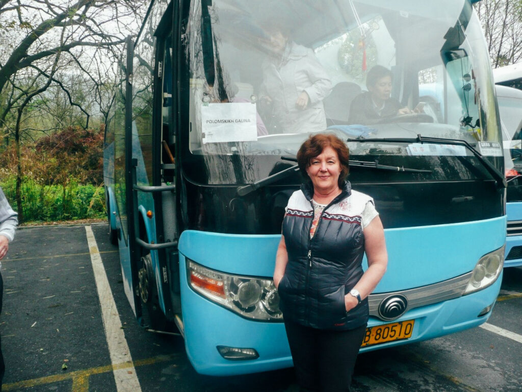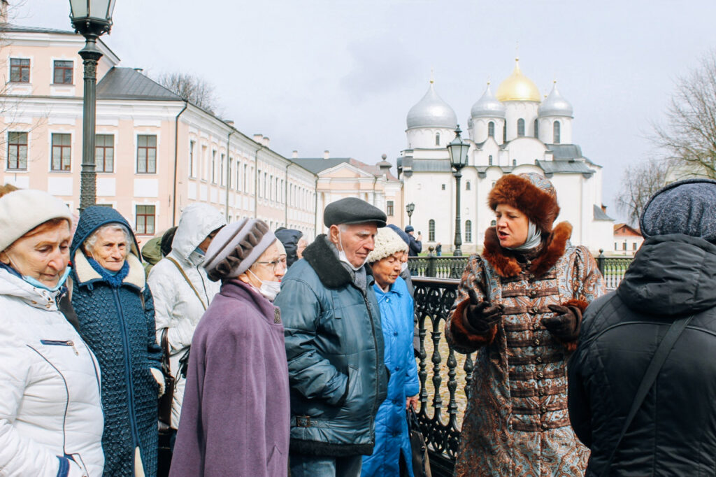 Die meisten Ausflüge der Gruppe begleitet Irina Swjagina, die seit über 30 Jahre als professionelle Reiseleiterin arbeitet. Sie hat die schon zu Sowjetzeiten berühmte Schule für Tourismuskunde am Städtischen Tourismusbüro Sankt Petersburg abgeschlossen und dabei die Disziplinen studiert, die unabdingbar für ihre Arbeit sind: Psychologie, Rhetorik, Stimmbildung, Architektur- und Kunstgeschichte u.v.m. In ihrer Mappe befinden sich lizensierte Exkursionen durch Sankt Petersburg und dessen Vorstädte zu jedem Themenbereich.