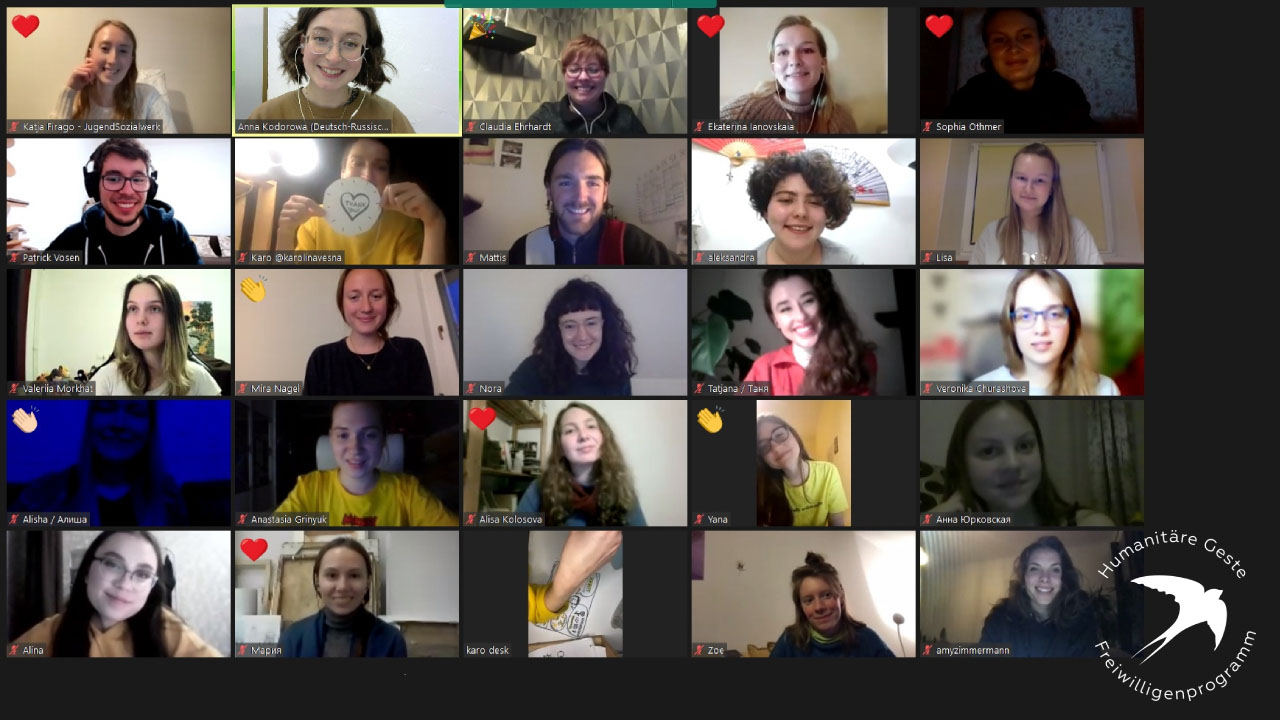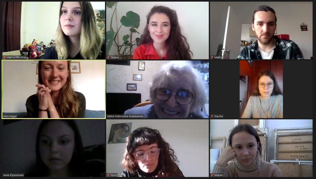 Auch in unserem Freiwilligenprogramm hat der Frühling wahrhaft Einzug gehalten. Einen ganzen Monat lang haben die Teilnehmer/-innen sich an das Online-Format gewöhnt, einander kennengelernt und begonnen, sich mit der Geschichte der Blockade sowie den kulturellen Unterschieden und Gemeinsamkeiten auseinanderzusetzen. Jetzt ist die Zeit gekommen, den bereits zurückgelegten Weg zu analysieren und in die schon bekannten Themen einzutauchen, allerdings auf einem neuen Level. Zeit für Kreativität, Gespräche, die Suche nach ungewöhnlichen Blickwinkeln und Möglichkeiten der Arbeit mit Erinnerung sowie Geschichte.
