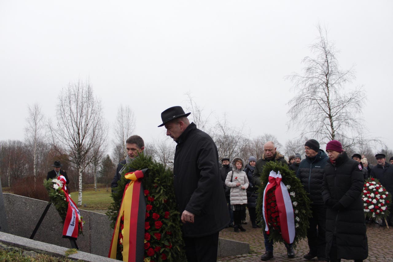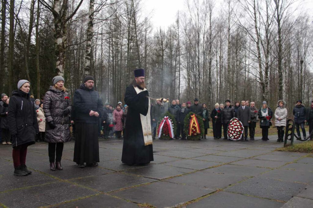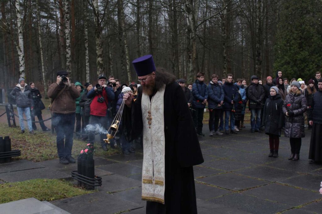 Nach Worten der deutschen Generalkonsulin Dr. Eltje Aderhold, russisch-orthodoxen Gebeten von Vater Charinow und katholischen Psalmen des evangelischen Pastors Michael Schwarzkopf legen rund einhundert Menschen aus Sankt Petersburg und der Leningrader Oblast rote Nelken um die Blumenkränze des Generalkonsulats der Bundesrepublik Deutschland in Sankt Petersburg und dem Volksbund Deutsche Kriegsgräberfürsorge e.V. nieder. Nelken, die vor den meisten Gräbern in Russland die Andacht an die Verstorbenen symbolisieren. Heute, zum Volkstrauertag der Bundesrepublik Deutschland werden sie auf einen Boden gelegt, der 1941 ein bedeutender Ort der Leningrader Blockade war. An Massengräbern in den Sinjawinohöhen in der Nähe der von der Wehrmacht zuerst besetzten Stadt Schlüsselburg. Ein Ort, wo die deutsche Wehrmacht die Evakuierung der Leningrader Bevölkerung verhindern wollte. Und ein Ort, wo 1944 eine entscheidende Schlacht der sowjetischen Armee für die Zerschlagung der Blockade gewonnen wurde. Durch den hohen Eisen- und Kalkgehalt des Bodens aufgrund von Überresten dieser Schlacht wächst heute dort nicht mehr als ein paar borstige Büsche und Mohn.Um Frieden dauerhaft zu sichern, darf Krieg nicht in Vergessenheit geraten.